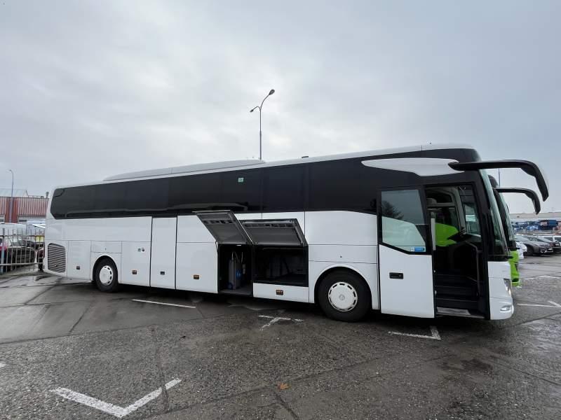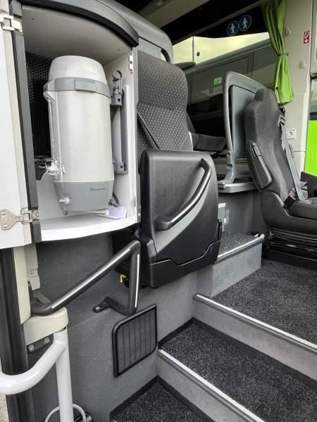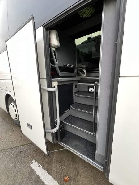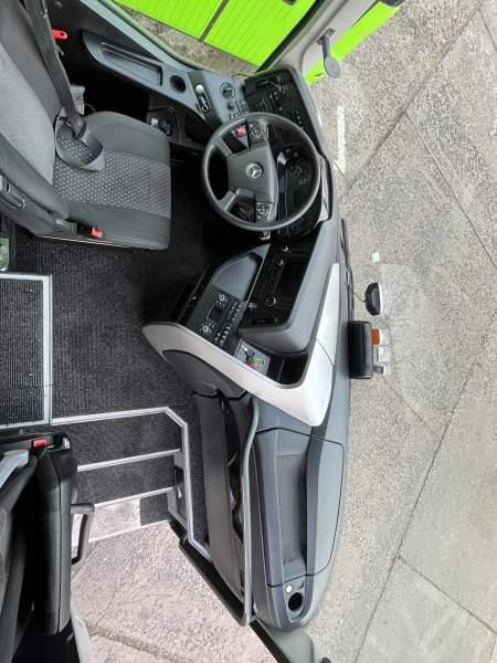 Wyposażenie: WC, lodówka, caffebar, fotele odchylane, oświetlenie indywidualne, nawiewy dyszowe, siateczki, ABS, ASR, tempomat, retarder, nawigacja, CD, podnóżki, stoliczki, mikrofon, klimatyzacja, radio, regulacja wysokości nadwozia, centralny zamek, podwójne szyby boczne, wspomaganie kierownicy, elektryczne lusterka, fotele odchylane i rozsuwane, DVD, ogrzewanie stacjonarne, ESP