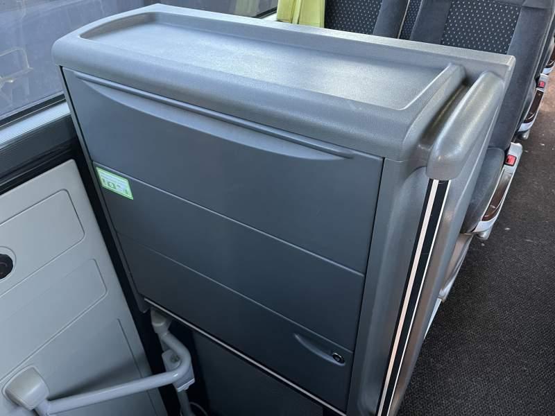 Ausstattung: WC, Kühlschrank, Küche, Sitze rückwärts verstellbar, Leselampen, Düsenbelüftung, Gepäckablagen, ABS, ASR, Tempomat, Retarder, Navigationssystem, Fußrasten, Tische, Mikrofon, Klimaanlage, Radio, Tresor, Hebe-Senk-Anlage, Zentralverriegelung, Doppelverglasung, Servolenkung, elektrische Spiegel, Alufelgen, Schlafsitze, DVD, Standheizung, ESP