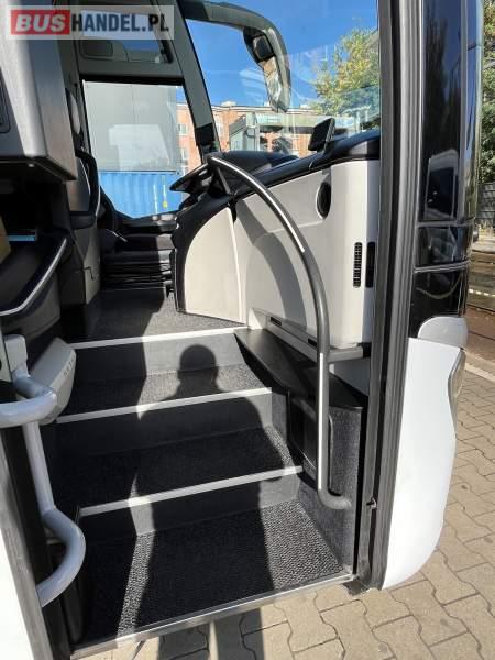Wyposażenie: klimatyzacja, WC, lodówka, caffebar, oświetlenie indywidualne, nawiewy dyszowe, fotele odchylane, podnóżki, stoliczki, siateczki, ABS, ASR, tempomat, retarder, nawigacja, CD, mikrofon, radio, fotele odchylane i rozsuwane, regulacja wysokości nadwozia, centralny zamek, podwójne szyby boczne, wspomaganie kierownicy, aluminiowe felgi, elektryczne lusterka, ogrzewanie stacjonarne, DVD, ESP