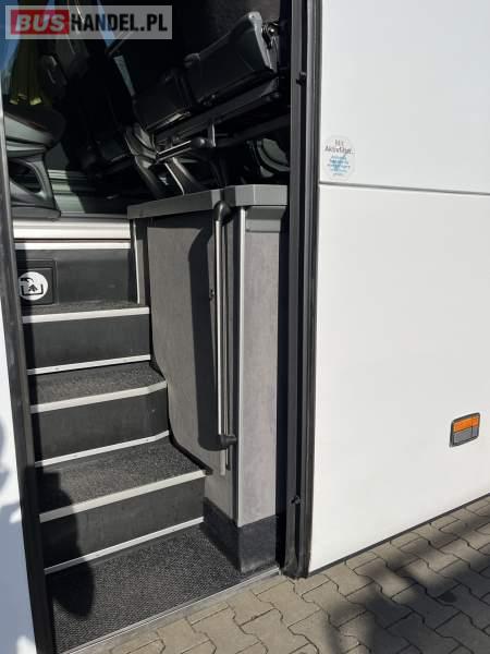 Wyposażenie: klimatyzacja, WC, lodówka, caffebar, oświetlenie indywidualne, nawiewy dyszowe, fotele odchylane, podnóżki, stoliczki, siateczki, ABS, ASR, tempomat, retarder, nawigacja, CD, mikrofon, radio, fotele odchylane i rozsuwane, regulacja wysokości nadwozia, centralny zamek, podwójne szyby boczne, wspomaganie kierownicy, aluminiowe felgi, elektryczne lusterka, ogrzewanie stacjonarne, DVD, ESP