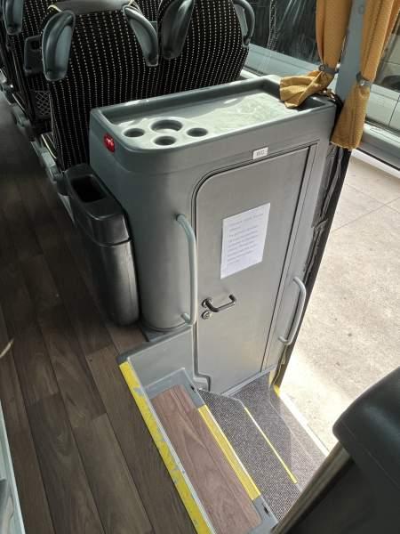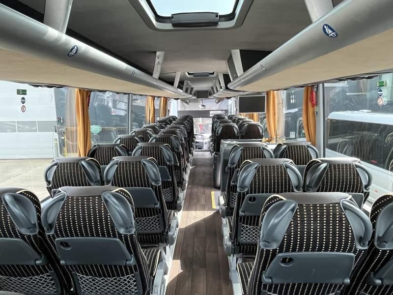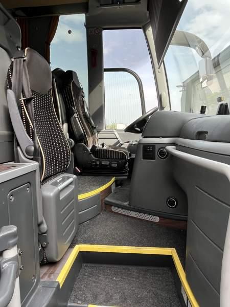 Wyposażenie: WC, lodówka, caffebar, fotele odchylane, oświetlenie indywidualne, nawiewy dyszowe, siateczki, ABS, ASR, tempomat, retarder, nawigacja, CD, podnóżki, stoliczki, mikrofon, klimatyzacja, radio, regulacja wysokości nadwozia, centralny zamek, podwójne szyby boczne, wspomaganie kierownicy, elektryczne lusterka, fotele odchylane i rozsuwane, DVD, ogrzewanie stacjonarne, ESP