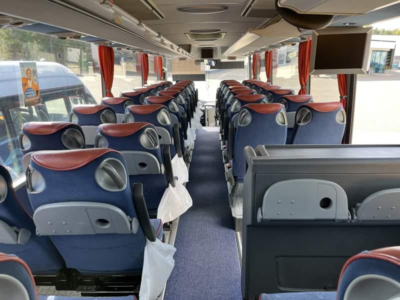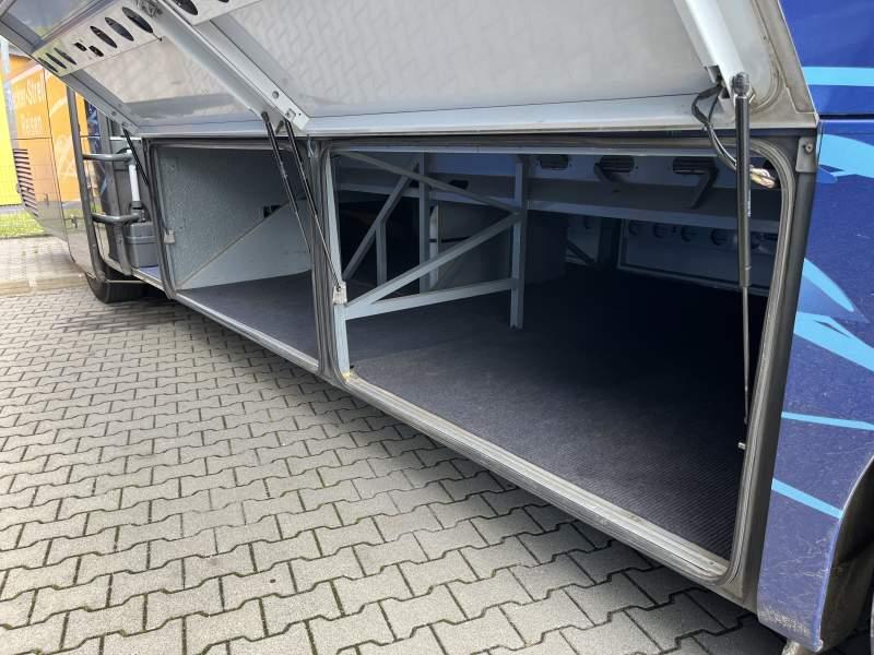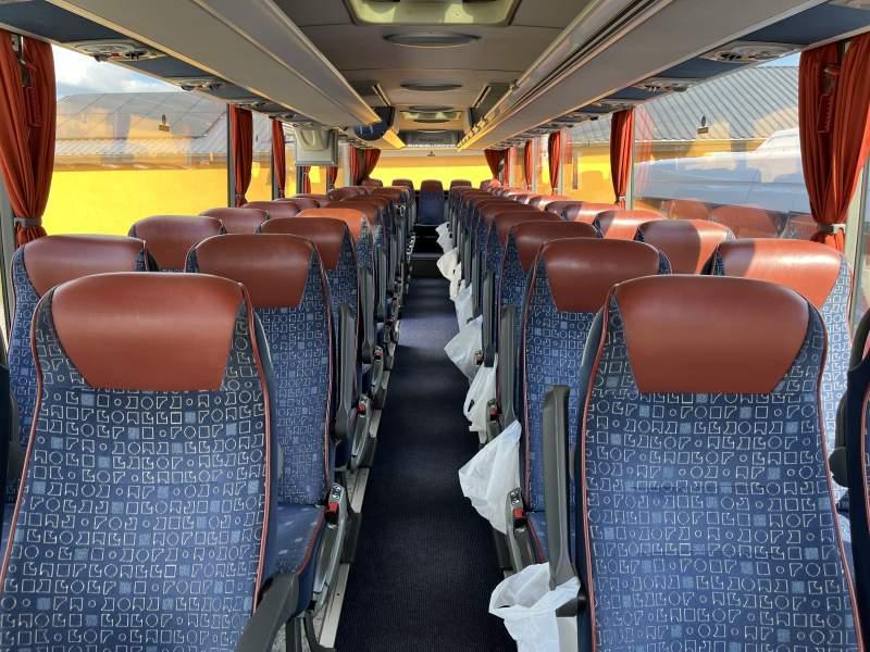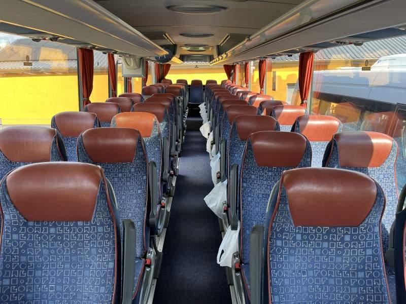 Wyposażenie: lodówka, caffebar, fotele odchylane, oświetlenie indywidualne, ABS, ASR, retarder, stoliczki, mikrofon, klimatyzacja, radio, podwójne szyby boczne, wspomaganie kierownicy, elektryczne lusterka, DVD, ogrzewanie stacjonarne