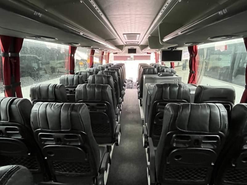Wyposażenie: WC, lodówka, caffebar, kabina sypialna, fotele odchylane, oświetlenie indywidualne, nawiewy dyszowe, siateczki, ABS, ASR, tempomat, retarder, nawigacja, podnóżki, stoliczki, mikrofon, klimatyzacja, radio, regulacja wysokości nadwozia, centralny zamek, podwójne szyby boczne, wspomaganie kierownicy, elektryczne lusterka, fotele odchylane i rozsuwane, DVD, ogrzewanie stacjonarne, ESP