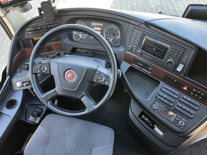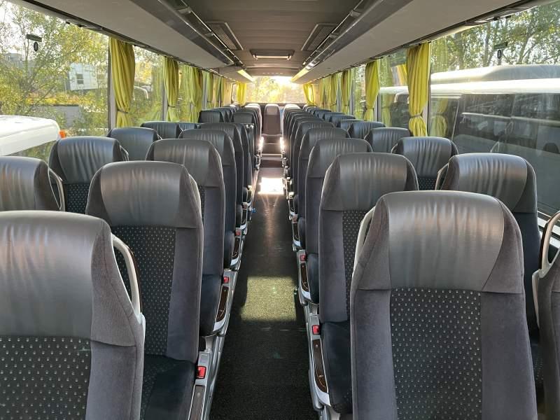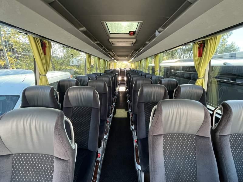 Wyposażenie: WC, lodówka, caffebar, fotele odchylane, oświetlenie indywidualne, nawiewy dyszowe, siateczki, ABS, ASR, tempomat, retarder, nawigacja, CD, podnóżki, stoliczki, mikrofon, klimatyzacja, radio, regulacja wysokości nadwozia, centralny zamek, podwójne szyby boczne, wspomaganie kierownicy, elektryczne lusterka, aluminiowe felgi, fotele odchylane i rozsuwane, DVD, ogrzewanie stacjonarne, ESP