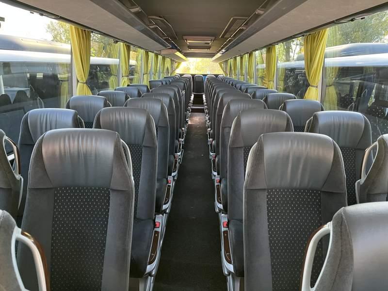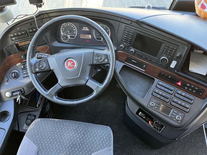 Wyposażenie: WC, lodówka, caffebar, fotele odchylane, oświetlenie indywidualne, nawiewy dyszowe, siateczki, ABS, ASR, tempomat, retarder, nawigacja, podnóżki, stoliczki, mikrofon, klimatyzacja, radio, sejf, regulacja wysokości nadwozia, centralny zamek, podwójne szyby boczne, wspomaganie kierownicy, elektryczne lusterka, aluminiowe felgi, fotele odchylane i rozsuwane, DVD, ogrzewanie stacjonarne, ESP
